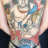 不動明王と龍の和彫り背中抜き彫り、刺青、和彫